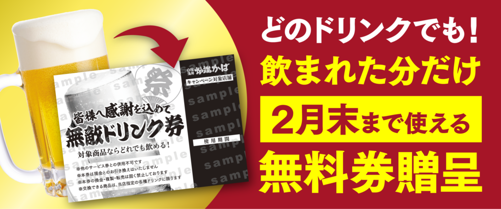 \飲まれた分だけ無料券進呈/ドリンク全額返金祭【松江駅前・雲南・出雲駅前・伯耆・津山・三次・浜田・加西】